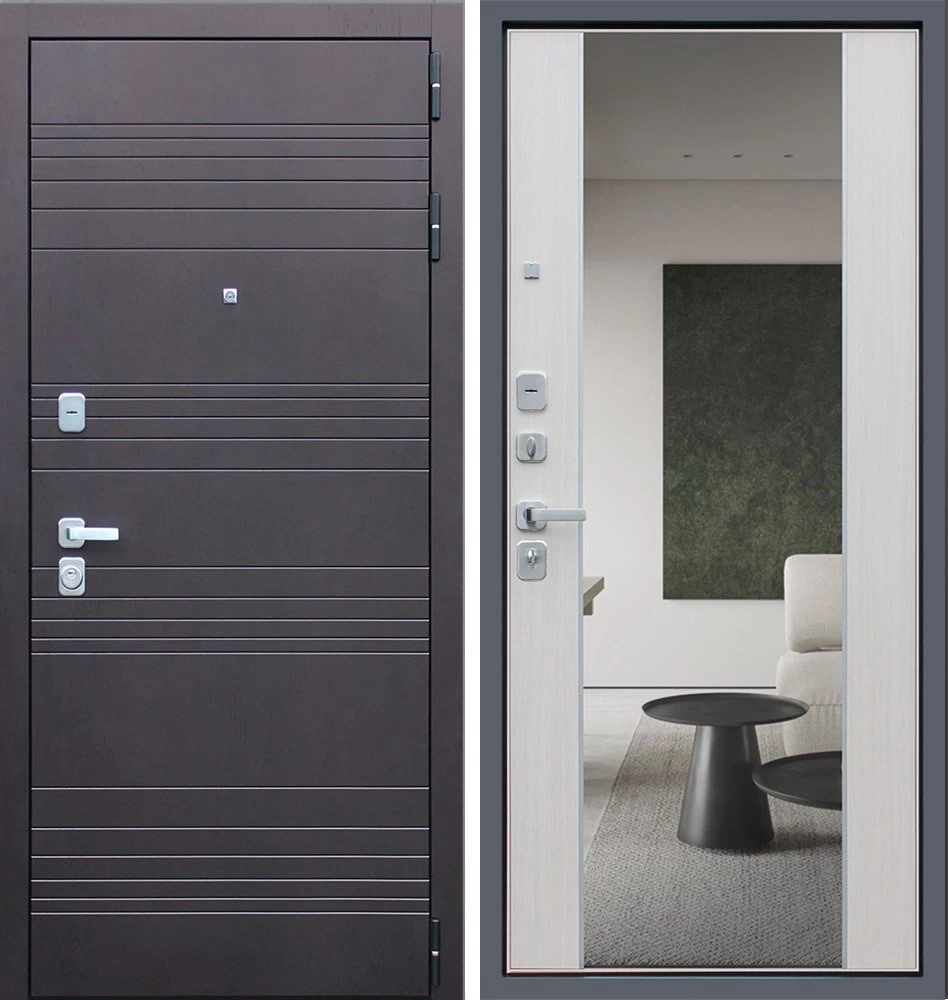 Надежная входная Дверь Дуэт с зеркалом премиум класса по цене 47 333 руб. Большая толщина стали защитит от проникновения в ваш дом, квартиру или коттедж. Используется очень качественная фурнитура: замки, цилиндры, ручки, защелки. Покрытие и отделка двери изготовлено под внимательным контролем производителя. Дверь имеет долгий срок службы и гарантию.