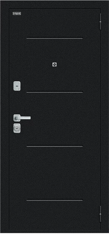 Надежная входная Дверь Браво Техно/BChrome Букле черное/Wenge Melinga премиум класса по цене 35 083 руб. Большая толщина стали защитит от проникновения в ваш дом, квартиру или коттедж. Используется очень качественная фурнитура: замки, цилиндры, ручки, защелки. Покрытие и отделка двери изготовлено под внимательным контролем производителя. Дверь имеет долгий срок службы и гарантию.